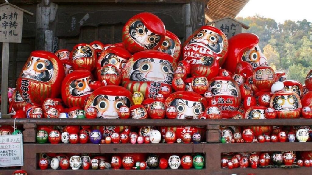 ‘दारुमा’ गुड़िया को इसके गोल, लाल रंग और खोखले आकार से आसानी से पहचाना जा सकता है। इसमें केवल एक चेहरा बना होता है, लेकिन इसके हाथ या पैर नहीं होते, जिससे यह किसी गुल्लक जैसी दिखती है। इस गुड़िया की सबसे खास बात इसकी निर्माण प्रक्रिया है। जब कोई व्यक्ति किसी बड़े लक्ष्य का निर्धारण करता है, तो वह गुड़िया की एक आंख भर देता है। इसके बाद, जब वह व्यक्ति उस लक्ष्य को प्राप्त कर लेता है, तो वह दूसरी आंख भी भर देता है। यह परंपरा लक्ष्य के प्रति दृढ़ संकल्प और निरंतर प्रयास को दर्शाती है।