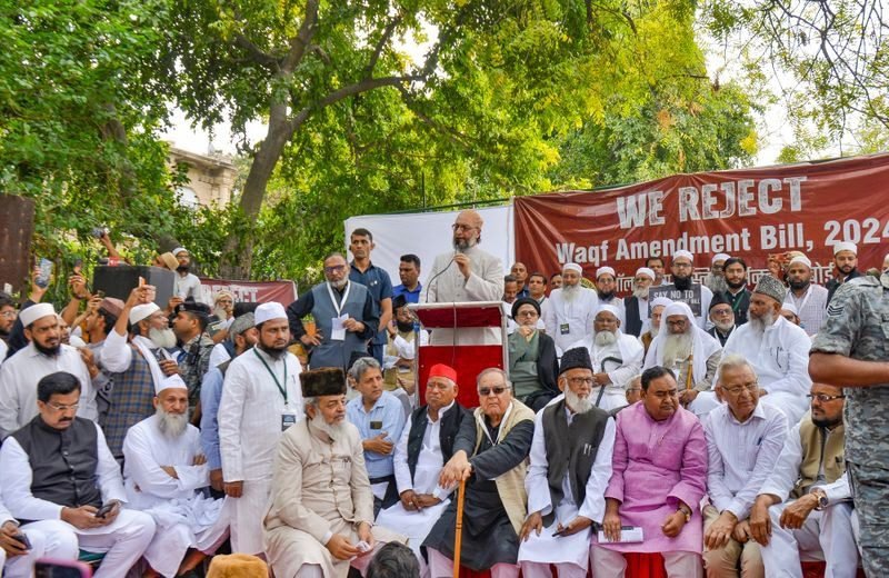 दिल्ली में शनिवार को जंतर-मंतर पर ऑल इंडिया मुस्लिम पर्सनल लॉ बोर्ड के नेतृत्व में वक्फ कानून के खिलाफ प्रदर्शन किया गया।