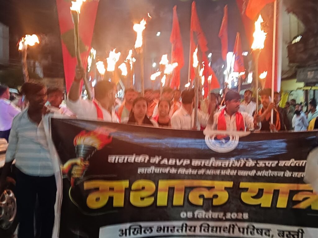 श्री रामस्वरूप मेमोरियल विश्वविद्यालय (एसआरएमयू), बाराबंकी में अखिल भारतीय विद्यार्थी परिषद (एबीवीपी) के कार्यकर्ताओं और छात्रों पर हाल ही में हुए लाठीचार्ज के विरोध में शुक्रवार को एबीवीपी ने प्रदेशव्यापी आंदोलन के तहत बाराबंकी में एक विशाल मशाल यात्रा निकाली। इस जुलूस में भारी संख्या में छात्रों और कार्यकर्ताओं ने भाग लिया, जिसने शहर की सड़कों पर अपनी ताकत का प्रदर्शन किया और विश्वविद्यालय प्रशासन व संबंधित अधिकारियों से न्याय की मांग की।